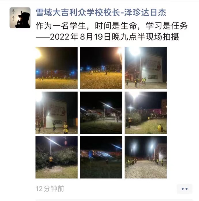 夜幕降临,仰望天空,繁星点点。夜色中,雪域文明慈善学堂的10盏路灯光芒四射,显得格外璀璨夺目,格外温暖明亮。孩子们指指点点,欢声笑语,洋溢着快乐幸福。“我们校园里有路灯啦!这下晚上住校心里踏实啦!